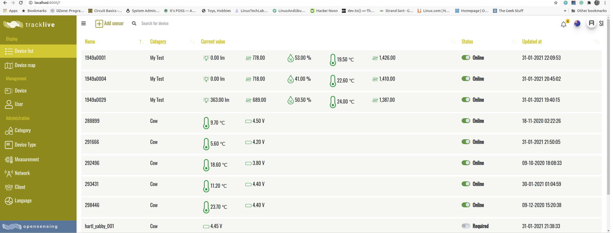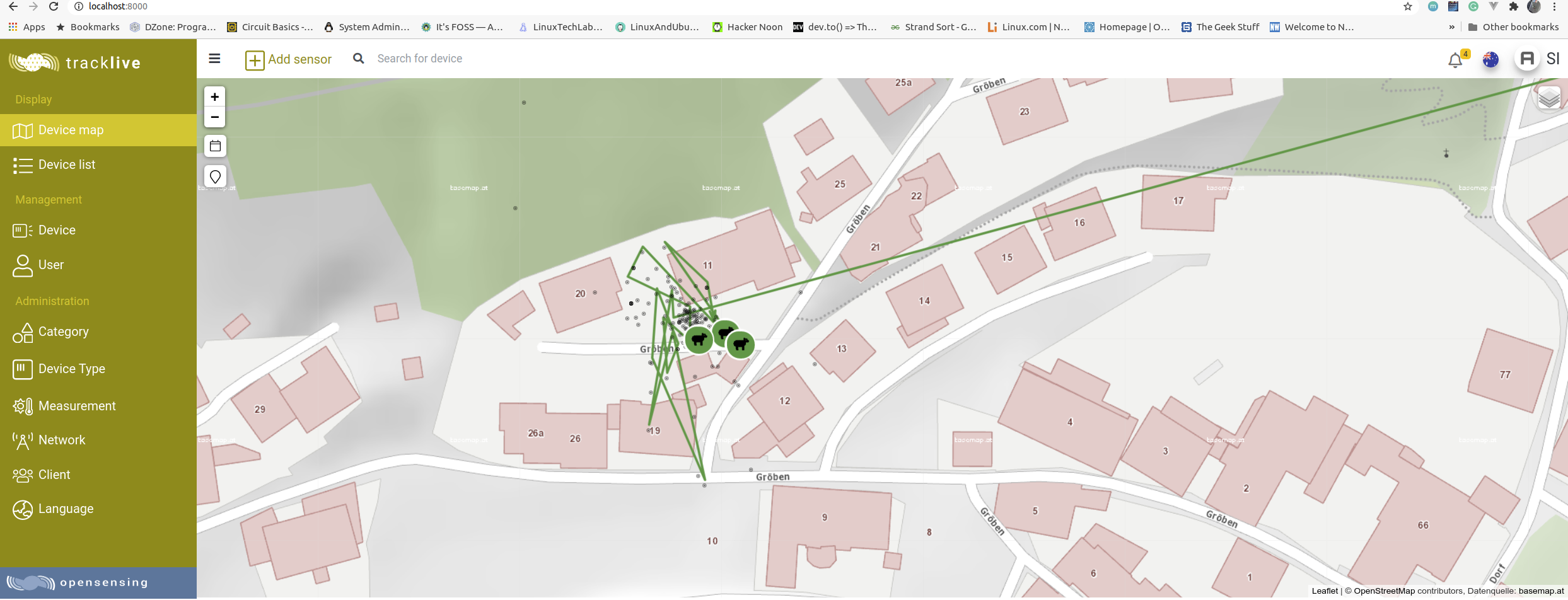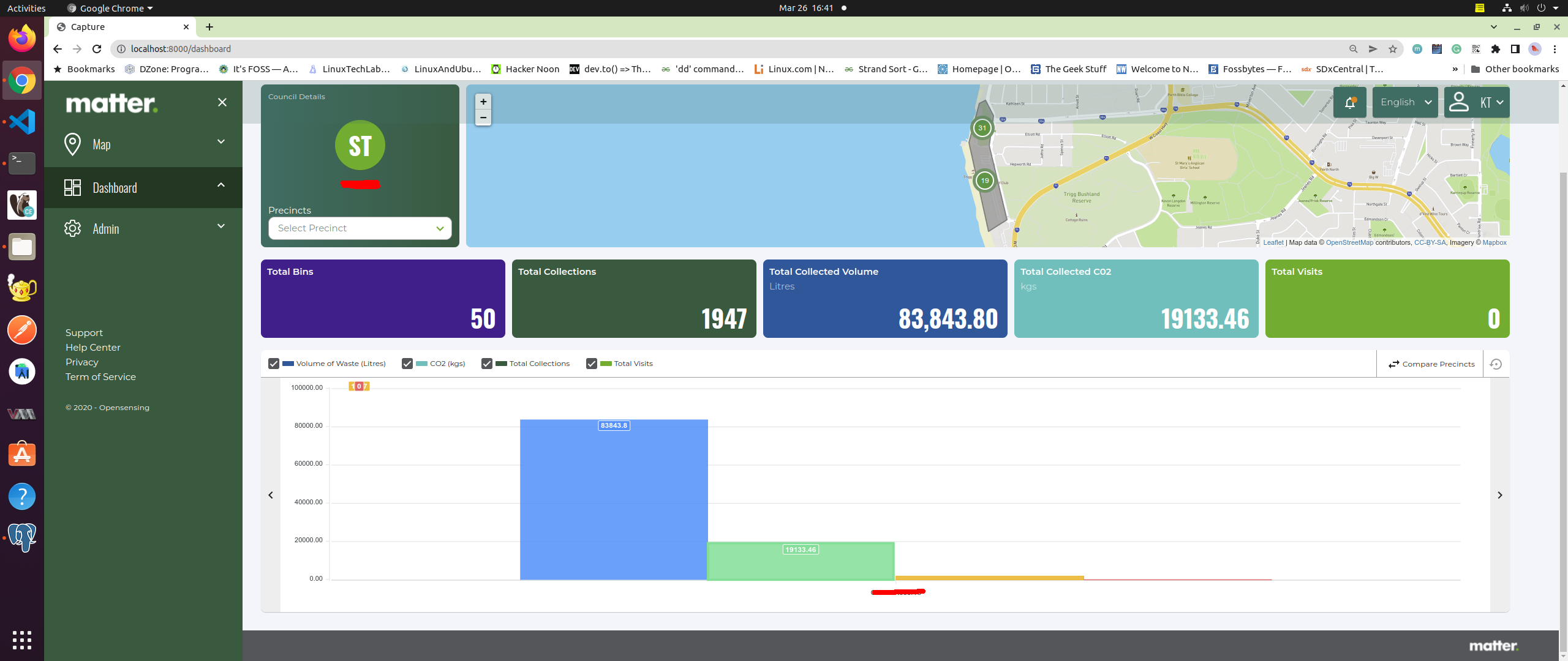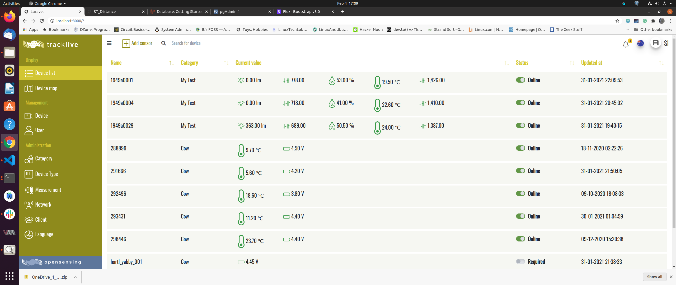 - Bin sensor management: Laravel / LeafletJS / PostgreSQL / TimescaleDB / Postgis