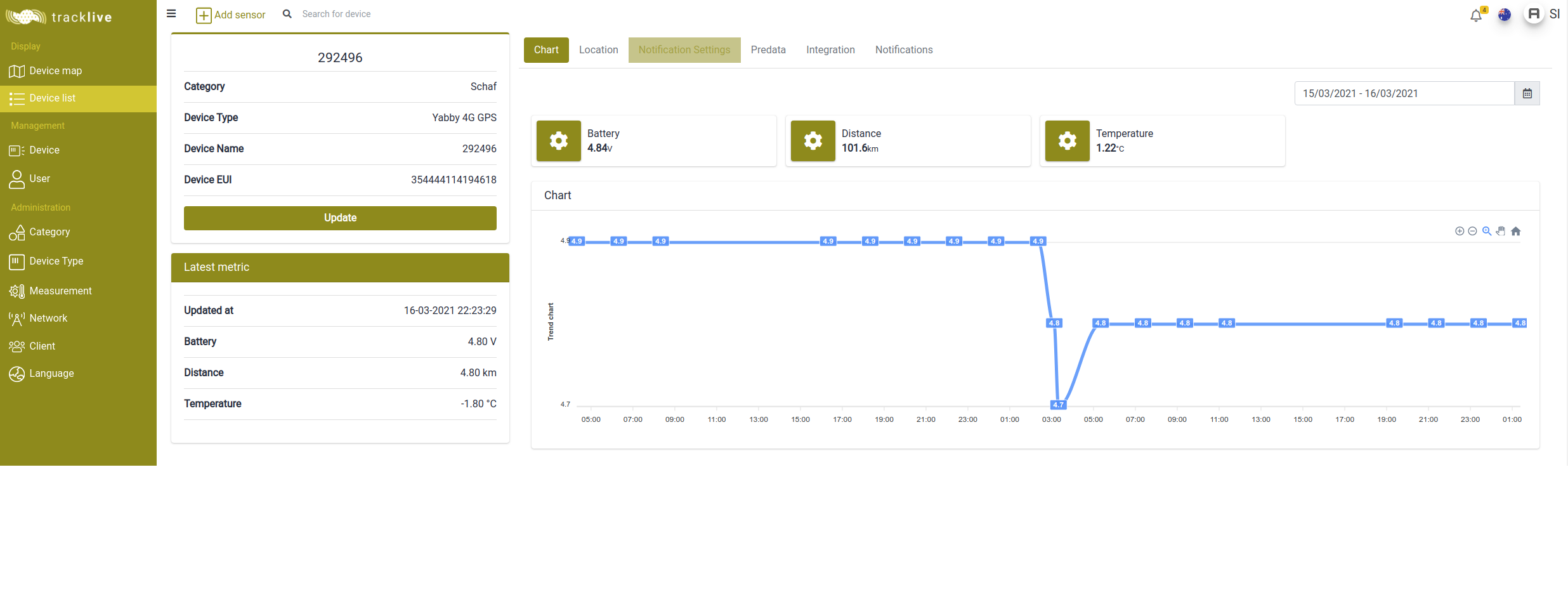 - Tracklive application which is used to track the location of animal: Laravel / LeafletJS / PostgreSQL / TimescaleDB / Postgis